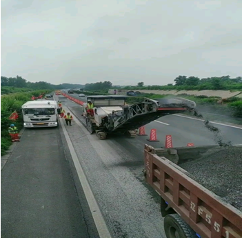 高速公路瀝青路面銑刨宜使用帶有自動控制銑刨深度的大型銑刨機進行。如:維特根、三一銑刨機等品牌,施工前先根據路面病害的實際情況,確定銑刨范圍,再實地放出銑刨線樣。根據需要銑刨的工程數量確定銑刨機數量,在需銑刨路段的一端按順序進行銑刨。銑刨盡量一次完成,中間除特殊原因外不得停頓。銑刨出的廢料由銑刨機輸送帶直接輸送至運輸車內,再由運輸車統一運輸到指定地點進行處理。由于銑刨機銑刨出的瀝青廢料較為均勻,具有一定的經濟價值,可以作為瀝青熱再生的原料進行再利用,也可以作為水泥穩定碎石的原材料進行使用。